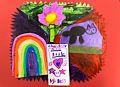 I love love love this bright use of color in your 80’s art project. Your symbolism of things you love flowers, rainbows, kittens is shown in your project. Mimi is so proud of your wonderful art projects! Love you oh so much!