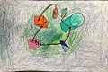 Charlie this tree frog IS awesome! I love the colors and it looks like you used pencil and watercolor - how cool! Is the tree frog giving us a peace sign? ???