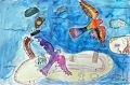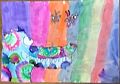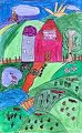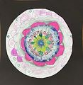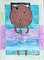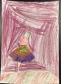 This work displays boldness and creative genius rarely observed in a child. The colors are reminiscent of early Rothko and the shapes suggest the influence of Marie Curie. This young artist has a bright future in art and science and will continue to impress us with her creations for many years to come.