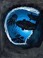 Caroline, this is a great view from a cavern under the ocean looking up to see the different sea life. This is beautiful & my favorite of all your artwork so far.