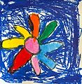 Nice work, Henry. You must really like the color blue. Your daisy flowers almost look like tiger faces. Love, Grandma