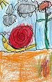 That looks like a happy snail! It looks like you worked hard to stay in the lines. Good job :) Love, Grandma P.