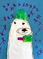 Your polar bear looks like he’s enjoying the snow. I like his green hat and gloves. Love, Grandma