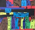 Great city artwork!! I especially liked the person riding his bike. I'm imagining he just shopped and Target and is riding home with his new purchase. You have nice use of colors and different sized buildings. Your cousin, Gus, would love that city bus.