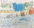 Benny, Love your drawing of such a beautiful day at the beach. Wish it were still warm enough to swim now. Your use of different colors makes make the picture really special. Are those fish in the water? Great picture! Your pictures always make me feel so happy! Love, Grandma