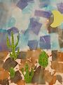 Great desert scene. I love the moon and the cactus!