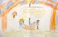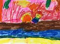 I love your art work, they are so colorful. I like the person jumping so high he touches the clouds. Keep up the good artwork