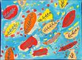 Sophie, I love this picture you did! It reminds me of a cruise we went on. Especially with the palm tree and sandy island. You did a great job on the ship. You just keep getting better and better at your art. Nana