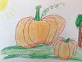 Great looking pumpkins resting near a shade tree in the fall sun! The colors are popping off the page!