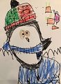 Hi Mac, So glad you drew a snowman with a big hat. It is to snow in Kansas on Saturday and I’ll need a big hat if I go outside then. And I think the Chiefs may have to play in the snow on Saturday. But then I see that yours is a snowman penguin. I can see his flipper. You are so creative. Keep up the great artwork mi love seeing it.