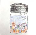 Your blending techniques made me believe that your submerged plants really live happily underwater in their Mason jar home.