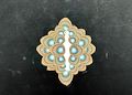 I see this piece as the beginning of a stunning piece of jewelry. The symmetry would be suitable for gold with blue topaz or turquoise. Lovely!