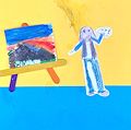 I love this ! An artist with her pallet and painting!
