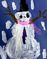 A very happy snow person with the arms up for hugging. I like your hat and scarf, so nice. Your snow person will last for a long time with all that cold snow falling. You are a very good artist.
