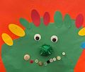 I love your art work. You took your favorite color green and made a very happy, imaginative, colorful creature. With it's great big smile, it makes me smile too. You have just the right amount of items to make it perfect. You are an artist in every way. Thank you for sharing and Love To You.