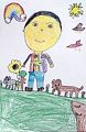 I am so impressed by Jimmy's self portray with so many details: our dogs, tulips, sunflowers flying birds in the sky and worms in the yard!
