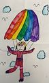 LOVE the rainbow colored parachute! Ooo and her outfit is fantastic while floating in the clouds!