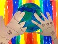 Raiden, Your use of color and shapes are so awesome! What do the symbols on your hands mean? What a great piece of art. Your hands holding the earth and the bright colors in the backround make me feel so happy. nicely done.Keep up the great work! Love you Nana