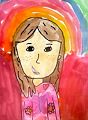 It's hard to draw sweetness and kindness but this little girl sitting under the rainbow somehow lets us know all about it. GG