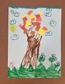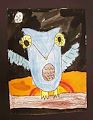 Creative Kiernan! Sun is setting and your owl is already for bed. Looks like the moon is pretty big. I wasn’t sure if it was a bat flying above his head. Nice job Kiernan.
