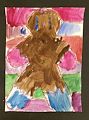 Mr. Moose has really big horns. Uncle Will would like him. I see hand prints and a foot for his face. He is really cute. Good job!