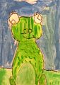 Your frog looks like it’s having a very good day! It has big eyes, a wonderful smile and looks like it’s been eating all of its food. I wonder what they eat.