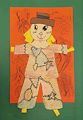 Wow a scarecrow. Reminds me of Wizard of Oz. He sure is colorful. He has a very big heart.
