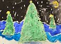Your class has been very busy doing art projects. I saw your trees that have big oranges on them. Bet they smell really sweet. This blue project I think is my favorite! The dark background with all the snowflakes is so pretty. Wish I had blue mittens like these. Even the mitten has snowflakes.