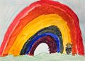That is a huge rainbow. We love to see rainbows. Yours is very bright and we have no trouble seeing it! Nice..