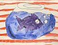 Why does he look so sad? Is this one of the fishes from Cat in the Hat book? All in all a great drawing Kiernan p
