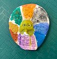 Your artwork is very colorful, it looks like a snake coming out of a volcano with a halo on his back. Love you, Nana