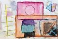 Oh wow Fiona! This watercolor painting is absolutely beautiful. B and I noticed that you included your favorite colors of pink and purple into this painting. The outlining is wonderful. You have created a variety of shapes and your fine motor control to draw simple geometric shapes is great! Just look at how you painted the entire space on this paper! Awesome!