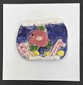 Dear Fiona, Your untitled painting is so pretty. B and I love your choice of color combinations. The heart, purple and green looking citrus slice and the black triangles outlined with brown remind Mimi of beautifully decorated cookies. When you think of art, you have to start with line, color and shape. You have captured the concept of art beautifully. Love, Mimi and B