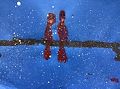 Very pretty birds sitting on a branch on a snowy day. They look like cardinals