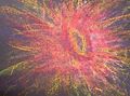 This is a very interesting piece. I like the specs of red and blue in the middle. I would love to hear the thought behind the work.