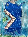Wow!!! That is a very large shark. I feel bad for the itsy bitsy little fish. Great job especially on the bloody teeth. Love Grandma L