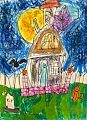 I love the spooky haunted house! Delilah enjoyed working with pastels.