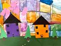 Beautiful pastel background colors with additional details reminiscent of a traditional home and neighborhood with manicured lawns, well kept houses in a friendly neighborhood. Nicely done Cooper.