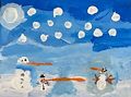 Those carrot noses must be really hard to maintain! I love how happy they look that it's snowing! :) And the top hat on the little one. You're so creative!