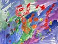 About a hundred years ago, a painter from Spain called Pablo Picasso used similar bold colors and lines like you've used here. I really like the energy in this one and wonder what you were thinking about as you painted it.