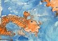 I would love to see fish like these in a fishbowl, fishtank, or even in a stream. I especially like the pattern of the scales. Actually, I like everything about the painting, the colors and the feeling of being in the water.