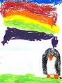 Wow!! I love the rainbow of colors and the penguin is so cute! Way to go buddy! I love you! Love Mom and Dad