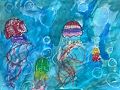 What a beautiful ocean! The colors for your jellyfish look amazing