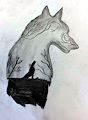 One of my favorite drawings. The profile of the wolf with a scenery drawn inside is beautiful.