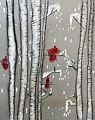 The red cardinals against the white bark trees and falling snow is so striking. Really great artwork, Clarke!