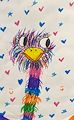 Love how furry and hairy your creature is that's surrounded by hearts that looks like flying birds. Great job!