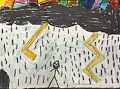 Stormy. I want to know about the blocks of color above the clouds.