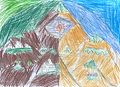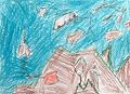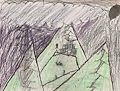 OK Eli. I’m going to guess that the red stuff is lava. But part of me wondered if it was light or fire. Super cool artwork! I was drawing tons of mountains at your age. It’s pretty much all I wanted to draw aside from eyeballs, but I can show you my old sketchbook. I don’t think there’s very many mountains in there. Because the sketchbook was from when I was older and younger than the mountain phase. I think the mountain phase was ages 10 to 12. Maybe you’re ahead of me