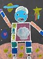 Your choice of colors is awesome! Is this a space alien because I see the stars and planets! Great job, Keaghan! Each of your art pieces has a different message to it! I like that about your art! Mummum