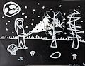 I love this! Love your mushrooms, love the use of the flashlight and your bat and how it's only partially lit. Great job, Penelope!